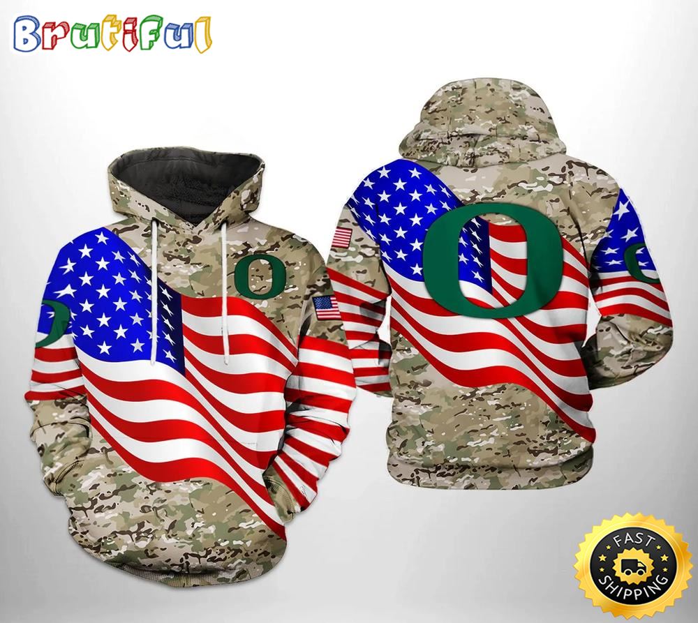 Oregon Ducks Flag American Camo Veteran 3D Hoodie College Baseball Apparel