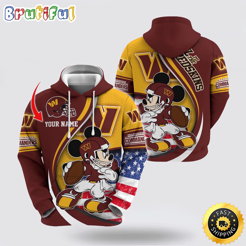 Personalized NFL Washington Commanders Hoodie Mickey Mouse 100 Year Anniversary is made with high-quality materials, this collection is designed to keep you warm and comfortable while showing your team pride. Don’t miss out on owning this limited edition!! There are 3 choices of this design for you: Hoodie, Zipper Hoodie and Fleece Zipper Hoodie.