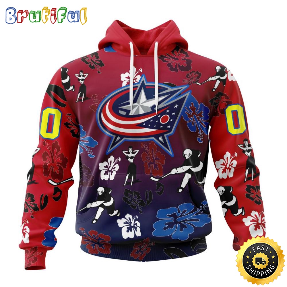 Personalized NHL Columbus Blue Jackets Hoodie Hawaiian Style Design For Fans Unisex 3D Hoodie