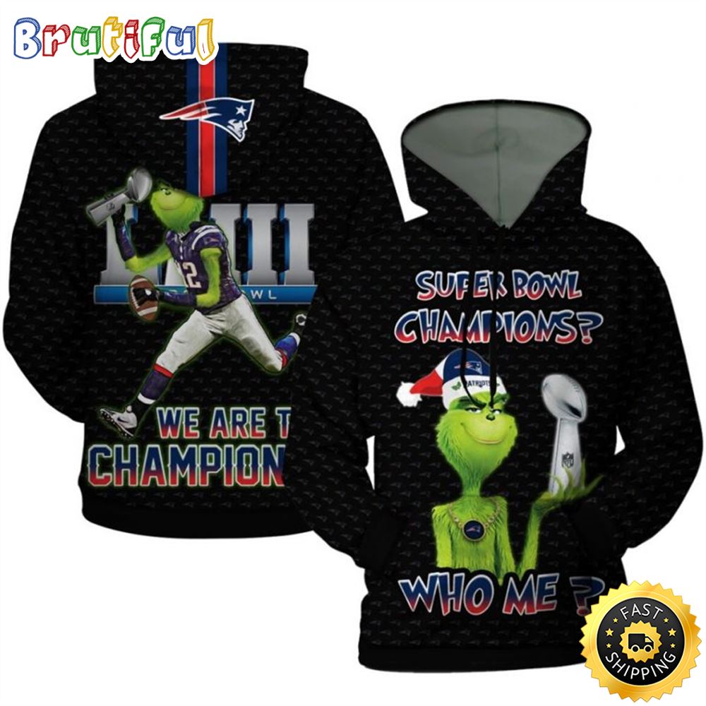 The Grinch New England Patriots Super Bowl Champions Santa All Over Print 3 Hoodie Zip Hoodie NFL is made with high-quality materials, this collection is designed to keep you warm and comfortable while showing your team pride. Don’t miss out on owning this limited edition!! There are 3 choices of this design for you: Hoodie, Zipper Hoodie and Fleece Zipper Hoodie.